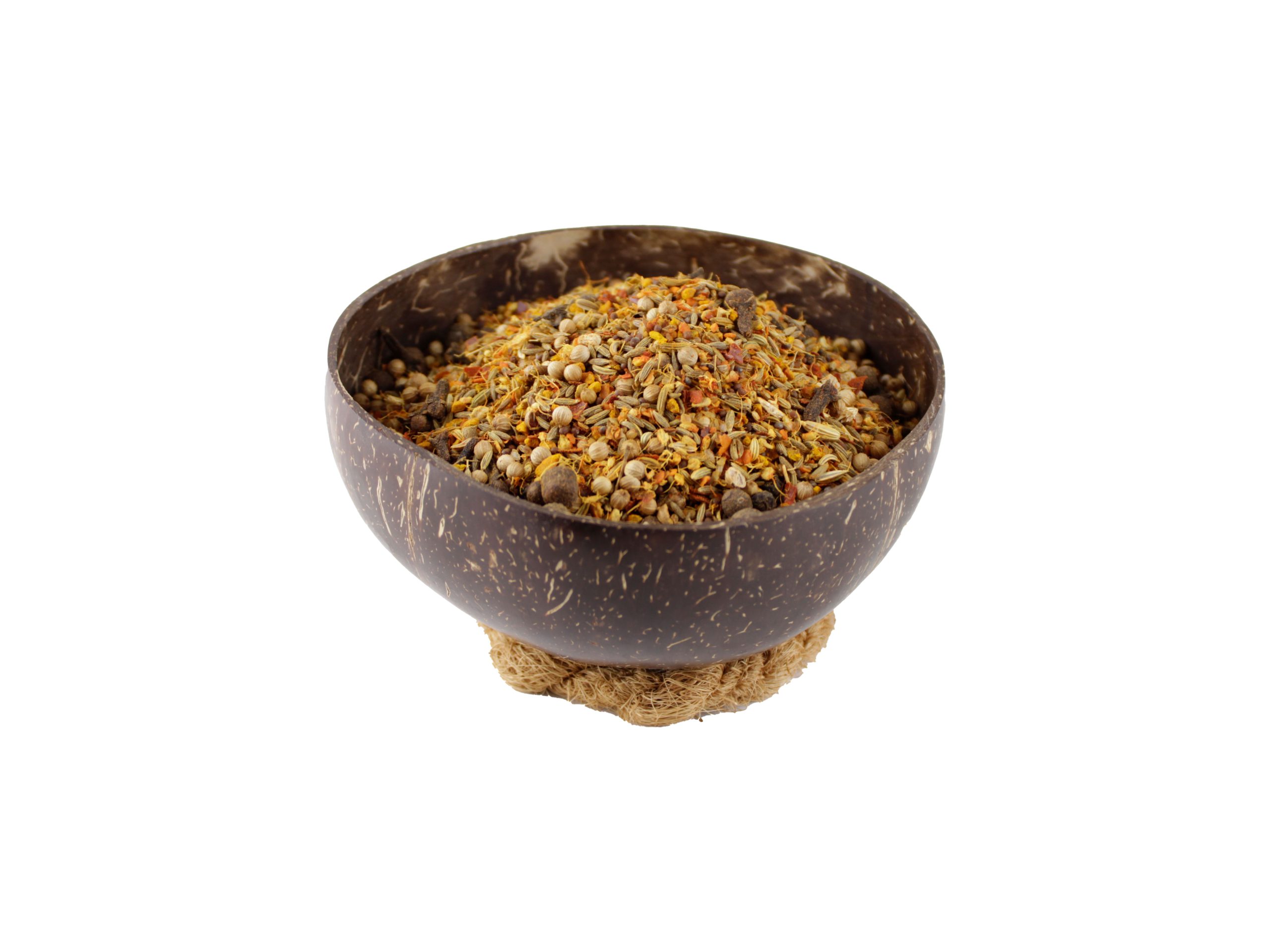 Ingredientes: Cominhos, Coentros, Curcuma, Funcho, Feno-Grego, Cravinho, Gengibre, Mostarda, Pimenta da Jamaica, Pimenta Preta, Aji.